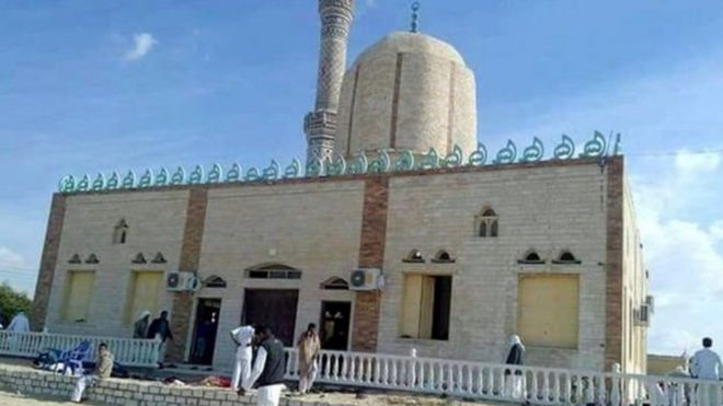Walioshuhudia wanasema kuwa msikiti wa al-Rawda katika mji wa Bir al-Abeid , karibu na al-Arish ulilengwa wakati wa ibada ya Ijumaa.